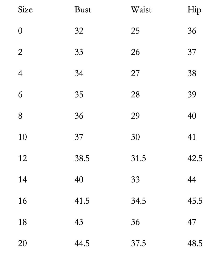 size chart
