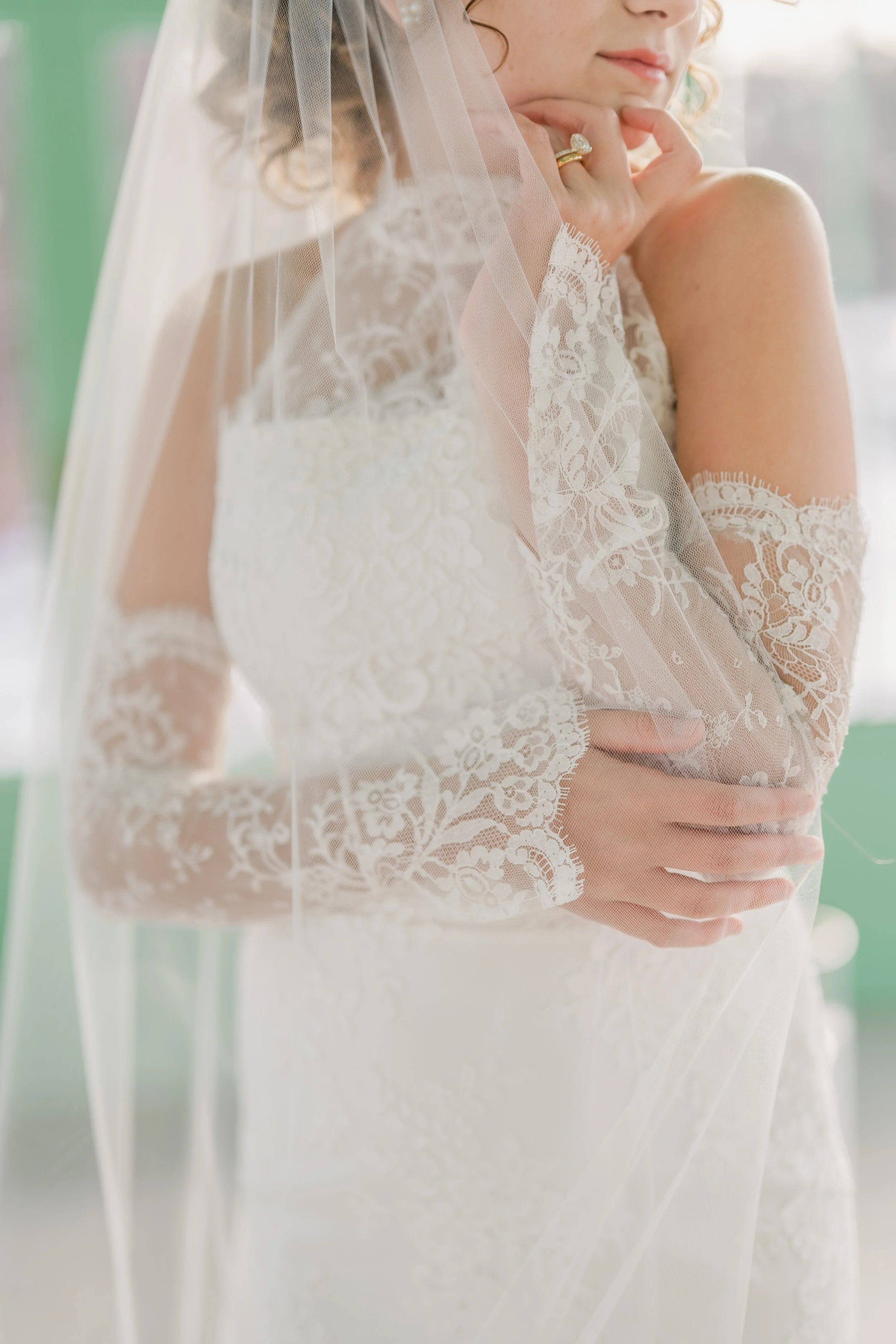 Detachable silk organza “double bubble” sleeves can be paired with any wedding gown with an armhole.