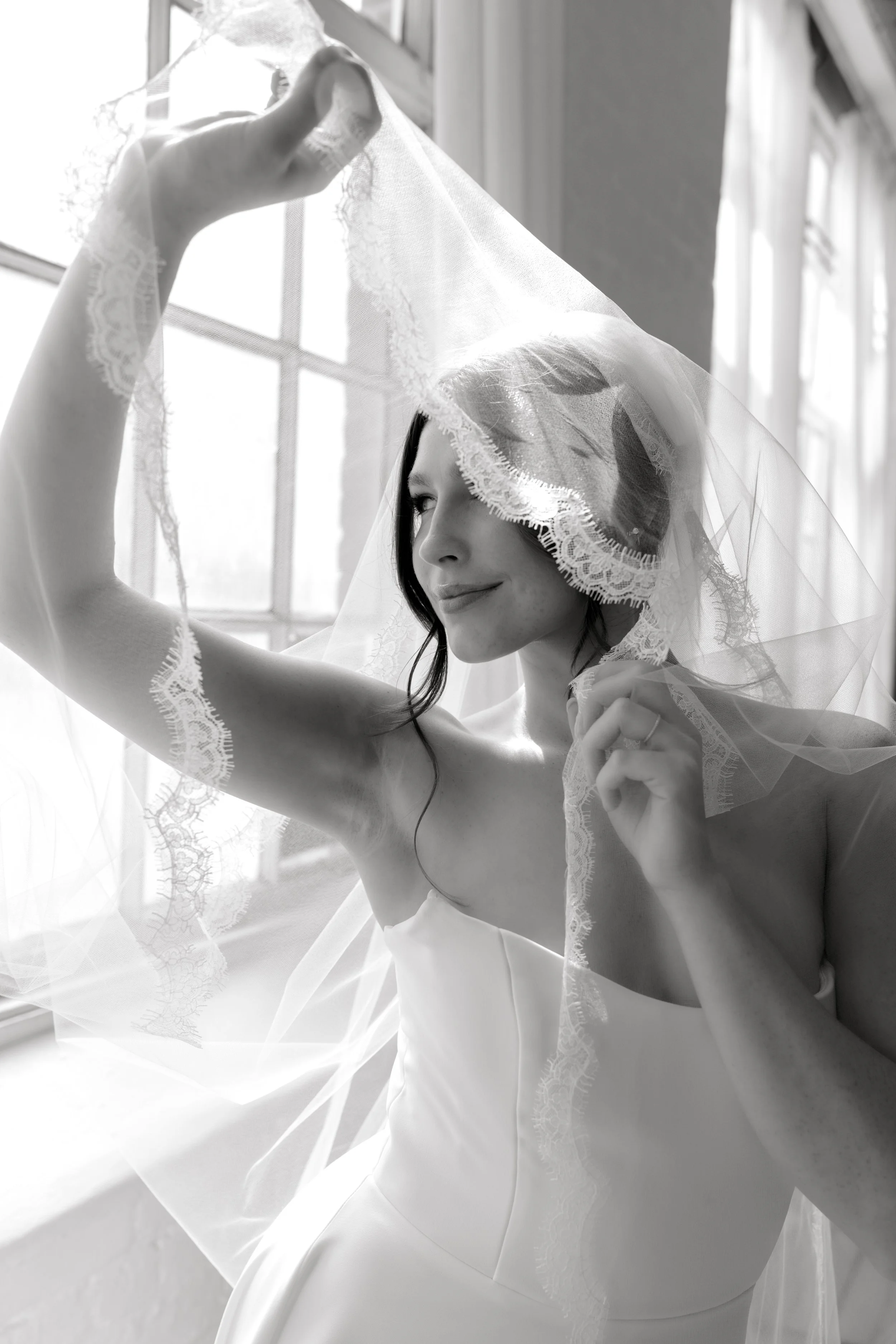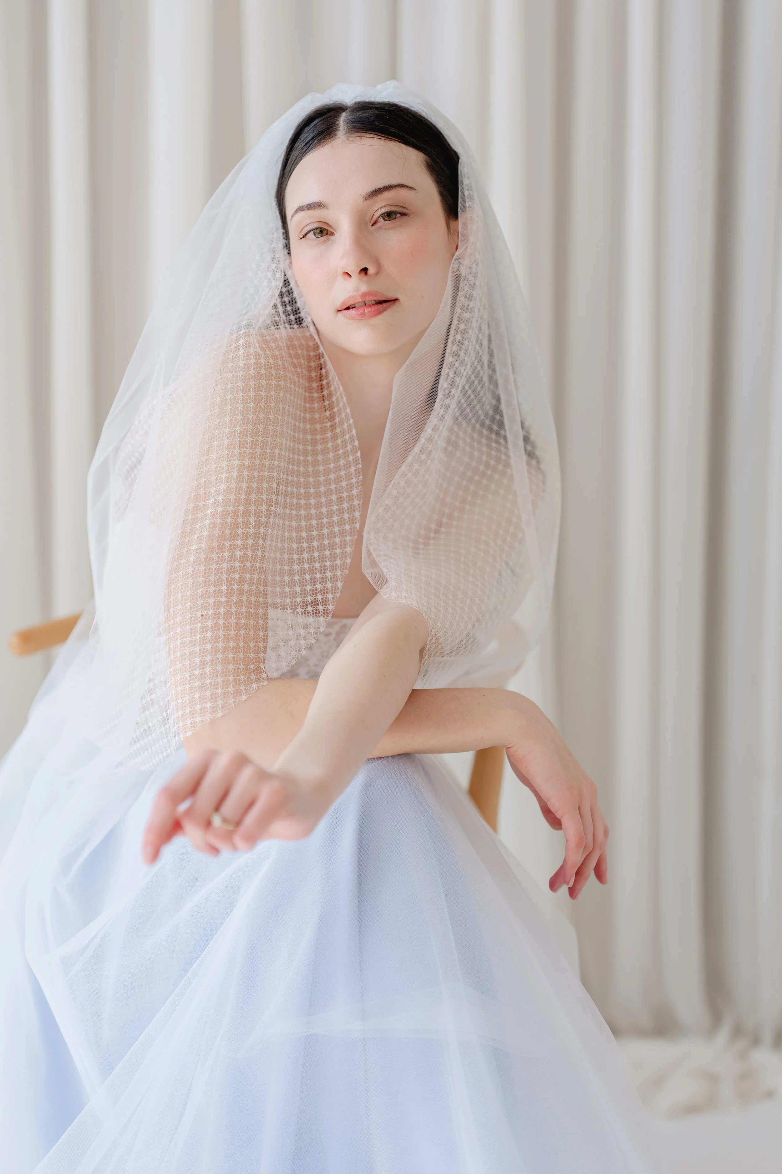 Our bestseller & the most classic veil you’ve ever seen; raw illusion edge; no embellishment; offered in light ivory OR silk white
